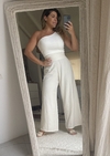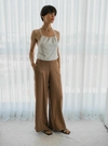 Calça de linho com corte reto,cintura média, fechamento com botão oculto frontal e ziper. Bolsos faca nas laterais. Dois bolsos trazeiros.